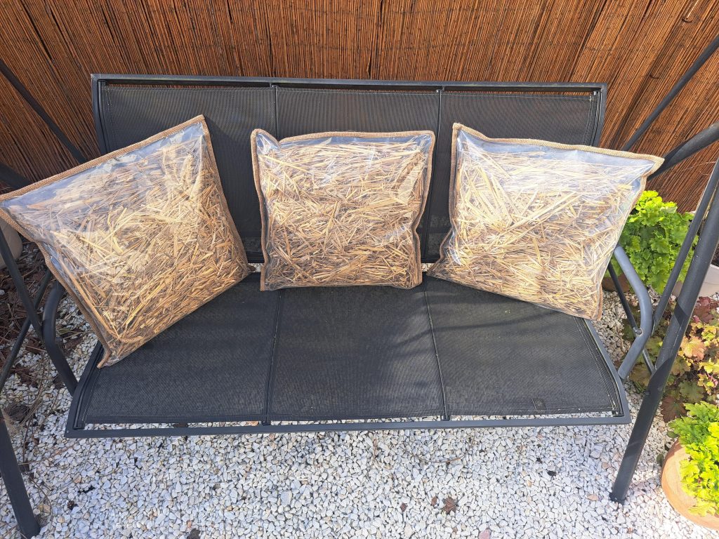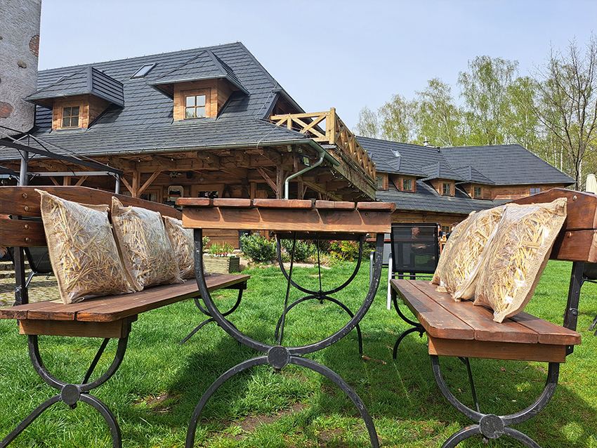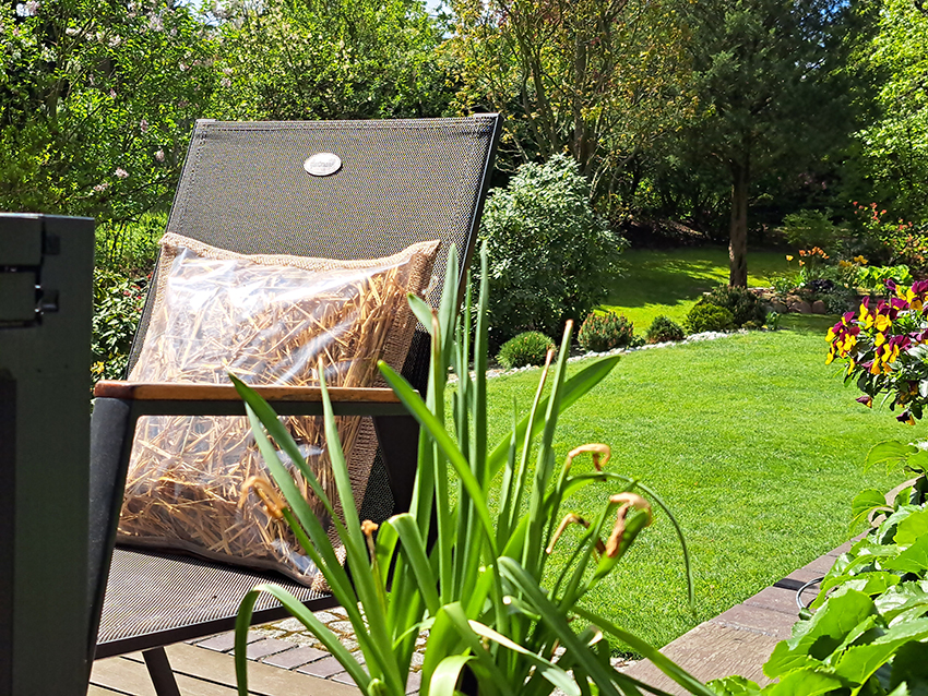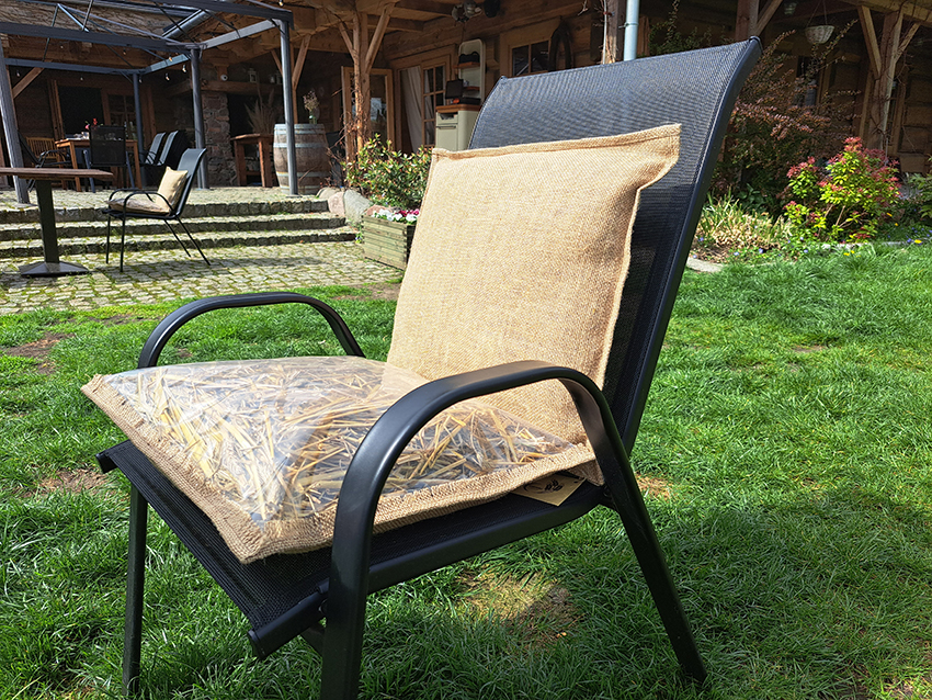 Natura obdarowała nas świetnie izolującym materiałem – słomą. Więc korzystaj z niej! Poduszki mogą być stosowane zarówno na siedzisku, jak i na oparciu. Szybko wracają do swojej formy.