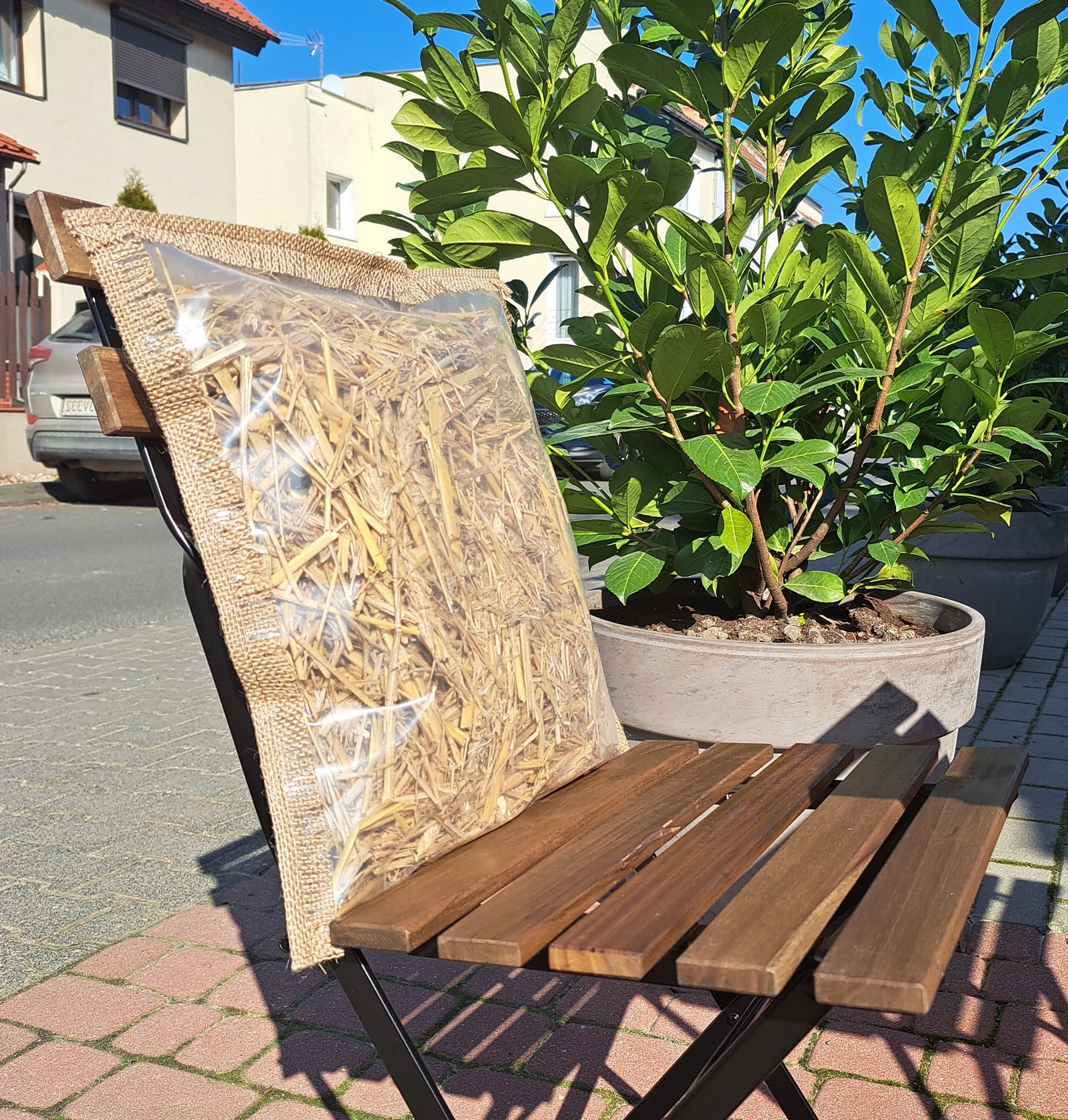 Moda na naturę nie przemija, a sama słoma to najstarszy materiał izolacyjny. Zamykając ją w formie poduszki, zadbaliśmy o to, aby fragment naturalnego piękna przenieść do domowego ogniska. Zapewnia nam to jednocześnie bardzo duży komfort termiczny, np. w ogrodzie czy ogródku restauracyjnym w kapryśne, chłodne wiosenne, letnie czy jesienne dni.